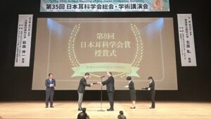 茂木先生の耳科学会賞授賞の瞬間です。正直次元が違い過ぎて言葉になりません。カッコ良過ぎて痺れると同時に、群馬大学の医局員として恥ずかしくないよう研鑽を積まなくてはと身が引き締まる思いでした。