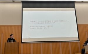 事前の茂木先生のアドバイスに従い早めの会場入りです。準備を済ませ、他の先生方の発表を聞きます。興味深い演題が並ぶ中、ドキドキは最高潮に。試合前のような緊張感に包まれました(当方学生時代はラグビー部に所属しておりました)。