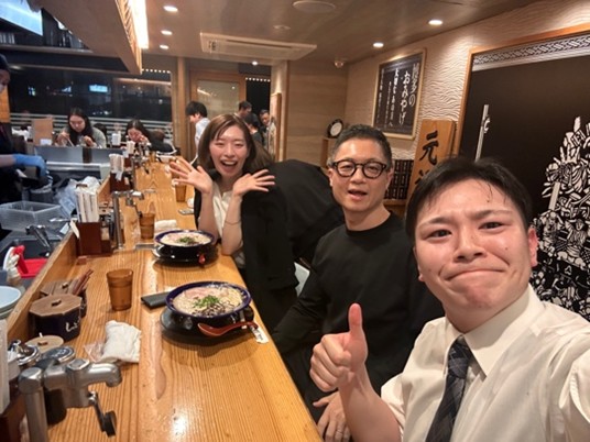 次はなんとラーメン屋へ。事前に小川先生と画策していた「絶対に茂木先生とラーメンを食べる」という目標が達成でき感無量です。