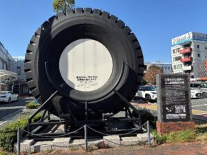 久留米はブリヂストンの発祥の地とのことで駅前に巨大なタイヤが設置されています。