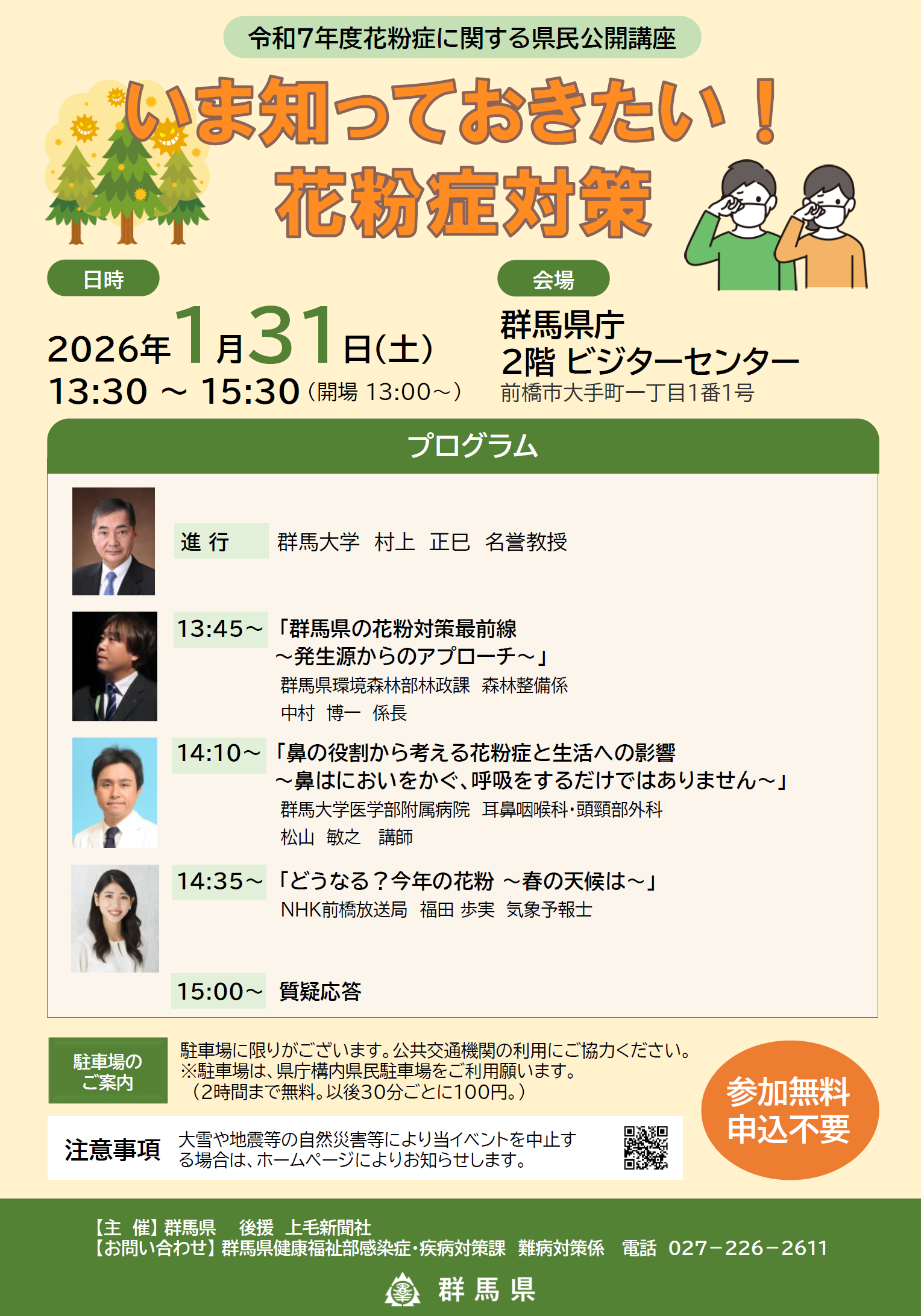 2026年1月31日(土)、群馬県主催による県民公開講座「いま知っておきたい!花粉症対策」が開催されます。